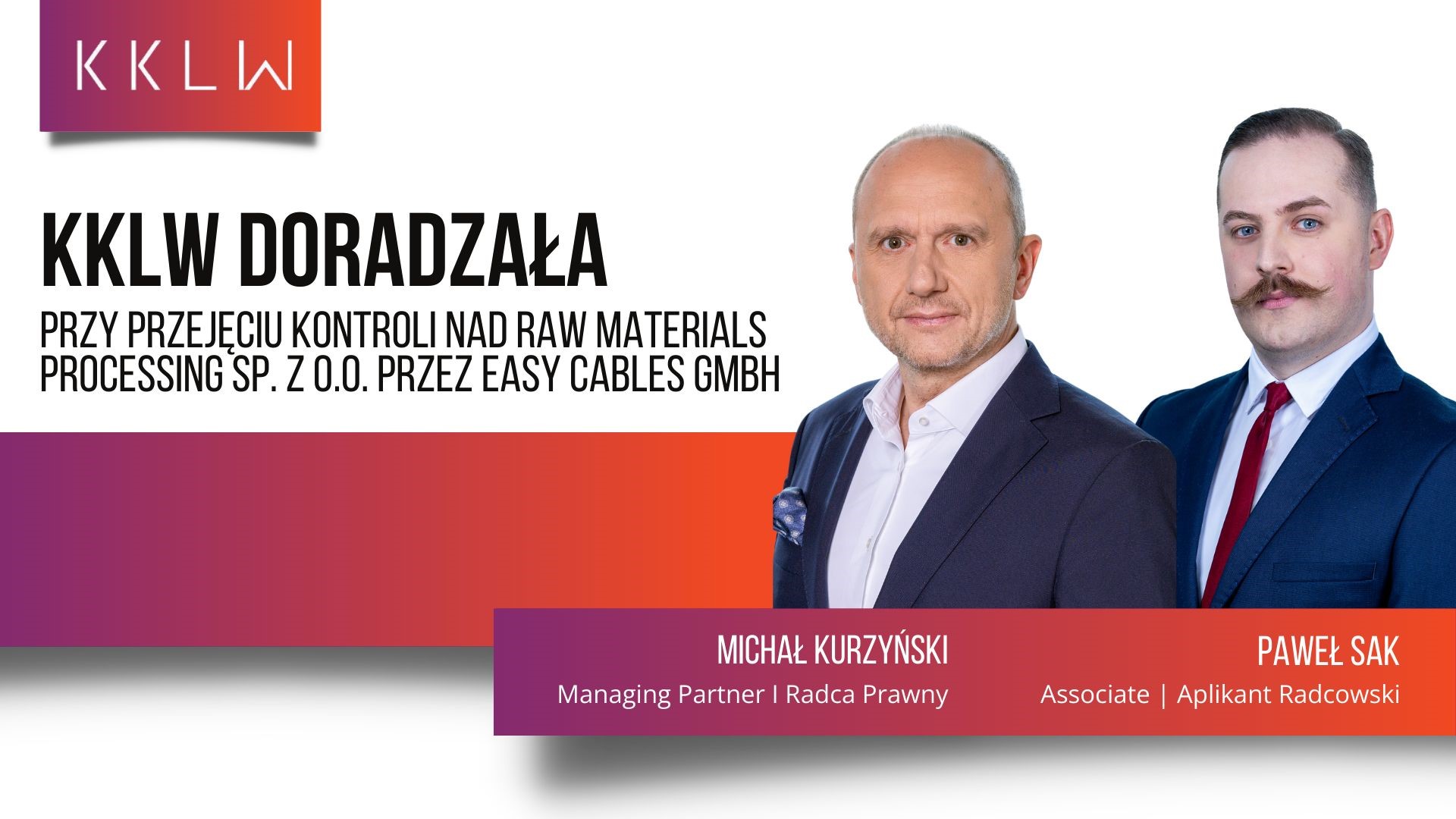 KKLW acted as advisor in the transaction involving the acquisition of control over Raw Materials Processing Sp. z o.o. by the Austrian company Easy Cables GmbH. Raw Materials Processing is a specialised company engaged in the production of PVC granules for the cable industry. KKLW's advisory services included comprehensive legal support for the transaction, including the acquisition of the company and debt restructuring, taking into account the release of all collateral established in favour of the company's main creditor. The finalisation of the process secured the continued operation of RMP and created a solid foundation for its dynamic development in the coming years. The project was led by managing partner Michał Kurzynski, with the support of associate Paweł Sak.