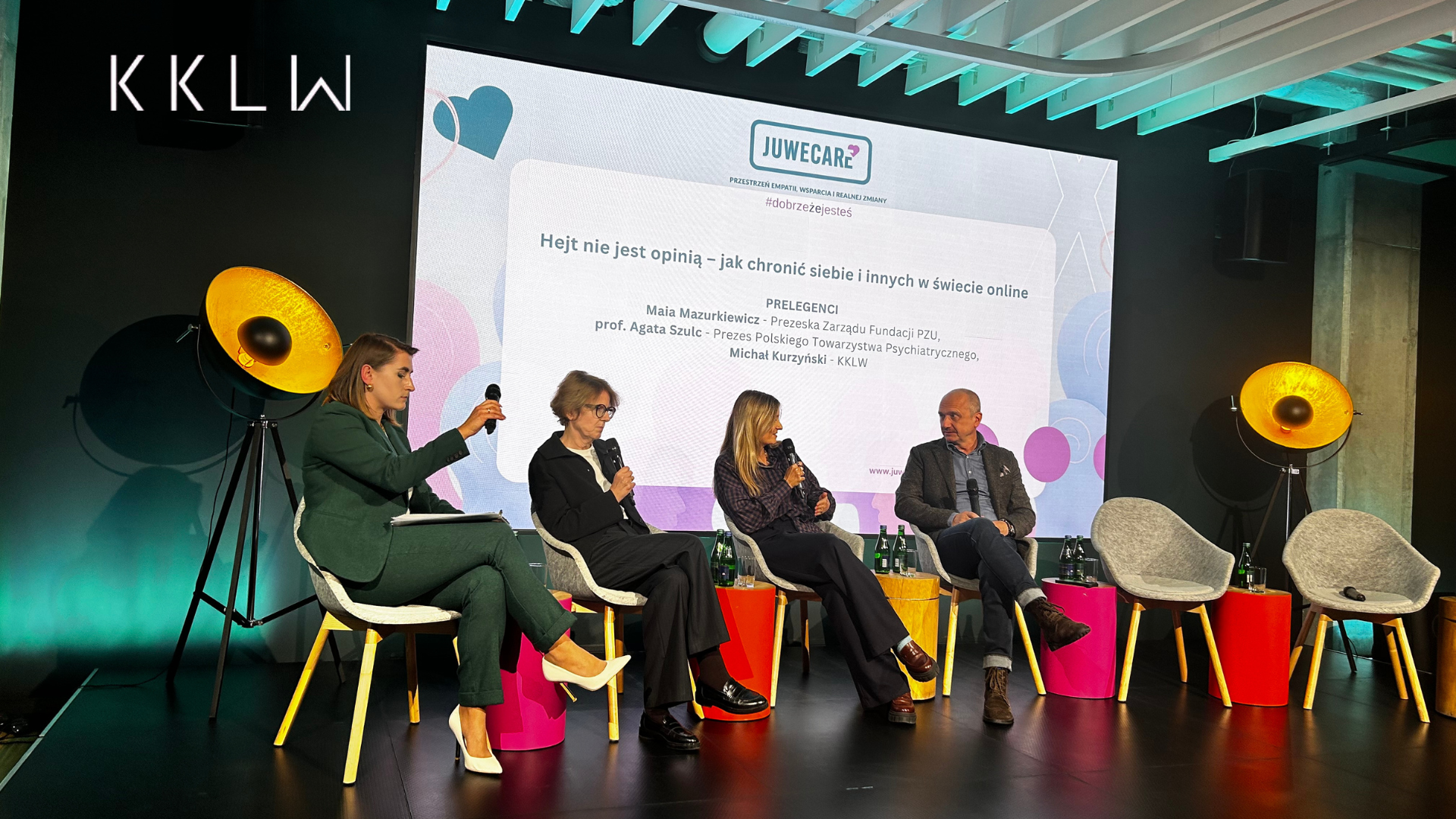 Wracając do ważnych momentów minionych miesięcy — na początku października Kancelaria KKLW miała zaszczyt wziąć udział w Juwe Fest 2025. To dla nas wyjątkowa okazja do zaangażowania się w inicjatywę, która łączy młodych ludzi, edukację i ważne społeczne tematy. Nasza obecność nie ograniczyła się wyłącznie do przestrzeni festiwalu — aktywnie uczestniczyliśmy również w ważnych rozmowach. Podczas debaty zorganizowanej w ramach Konferencji Prasowej głos zabrał Michał Kurzyński, founding partner kancelarii, który podjął temat wyzwań, z jakimi na co dzień mierzą się młodzi ludzie. Dyskusja dotyczyła m.in. dyskryminacji, presji społecznej, hejtu oraz tego, jak zjawisko to jest definiowane w polskim prawie – nie tylko jako mowa nienawiści, ale także jako szerszy problem społeczny, obecny zarówno w środowisku akademickim, jak i poza nim. Konferencja była częścią projektu JuweCare, który powstał w ramach festiwalu JuweFest i zainicjował kampanię społeczną #dobrzeżeJesteś. Jej celem jest przełamywanie tabu wokół zdrowia psychicznego oraz tworzenie przestrzeni do rozmowy i szukania realnych rozwiązań. Spotkanie zostało wzbogacone o dyskusje i prelekcje tematyczne dotyczące emocji, samotności, presji sukcesu, empatii, a także roli kultury i sportu w budowaniu odporności psychicznej.
